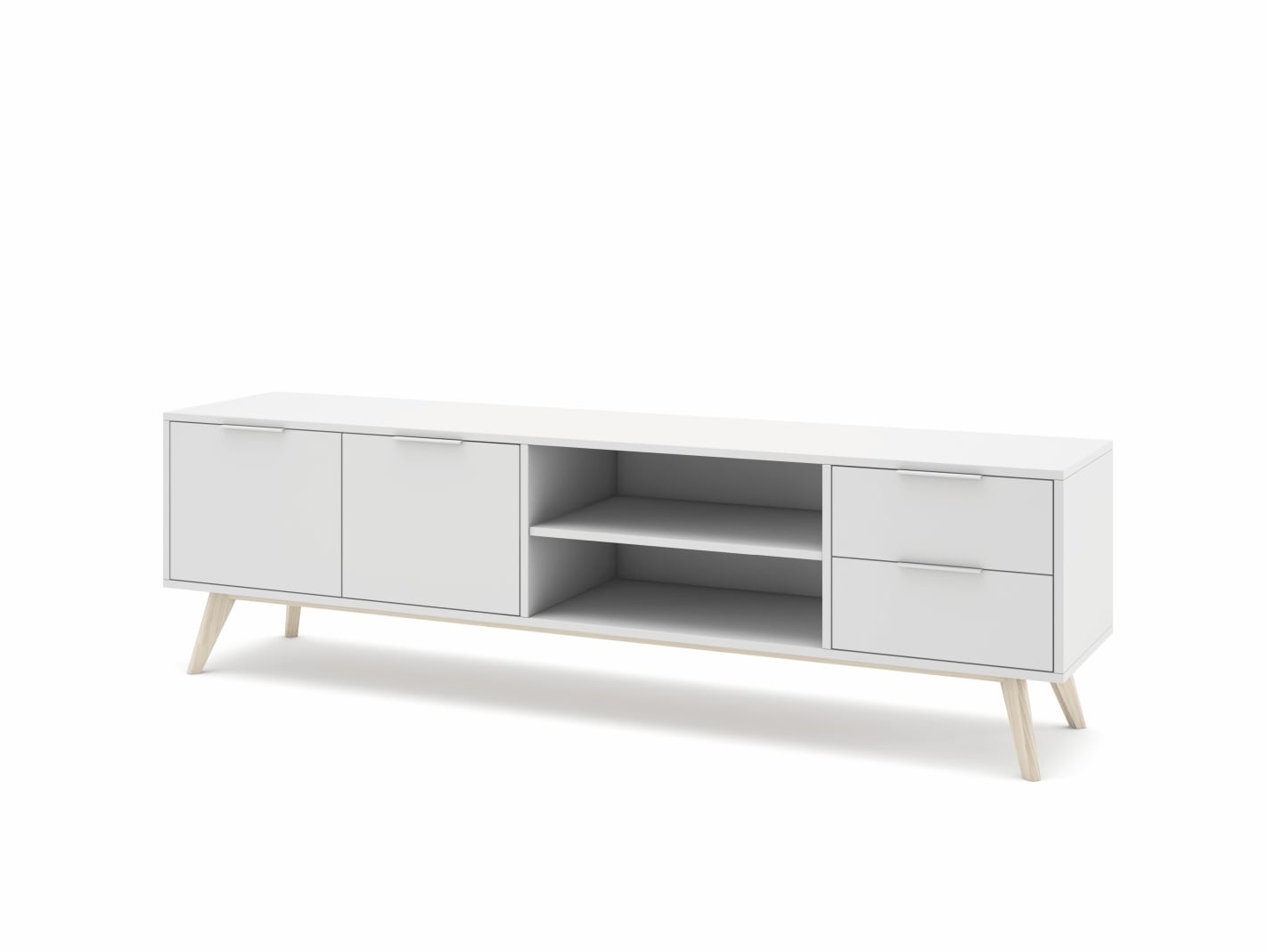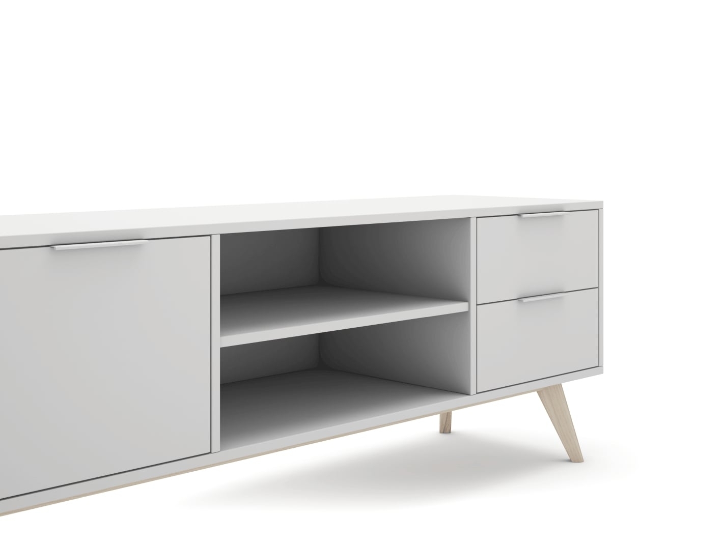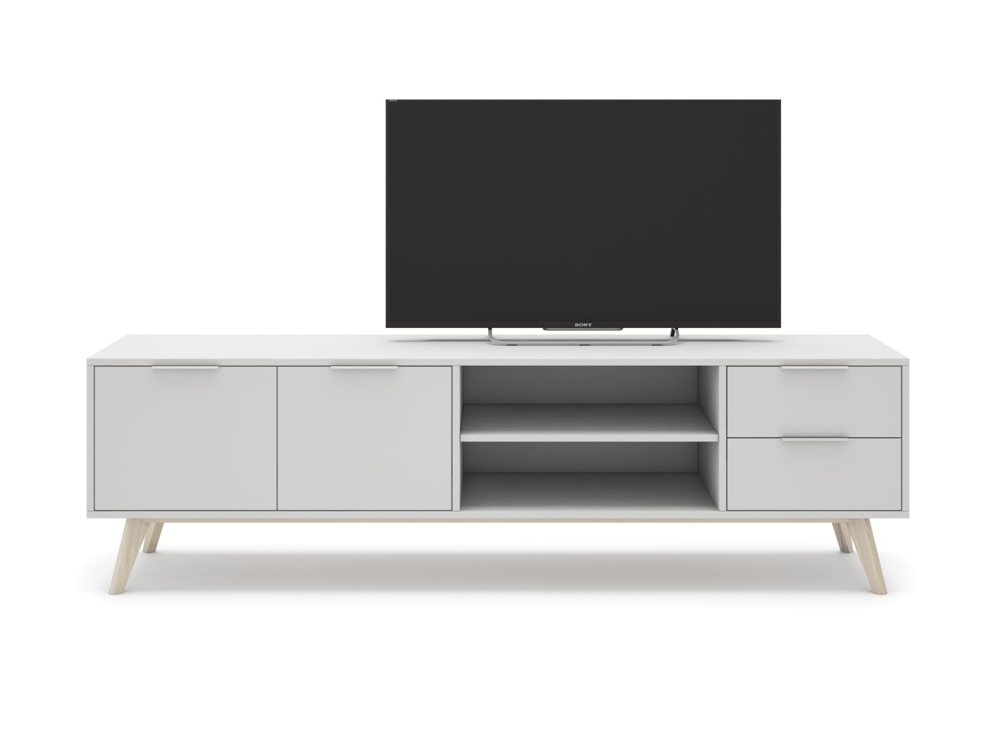 Mueble tv 2 puertas 2 cajones y 2 huecos color blanco-cera blanca