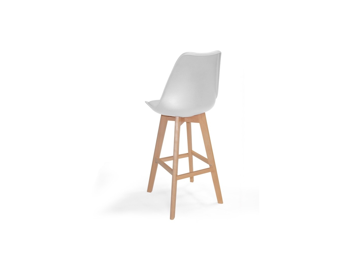 Taburete blanco con patas de madera de haya