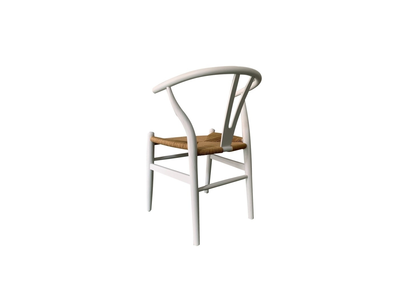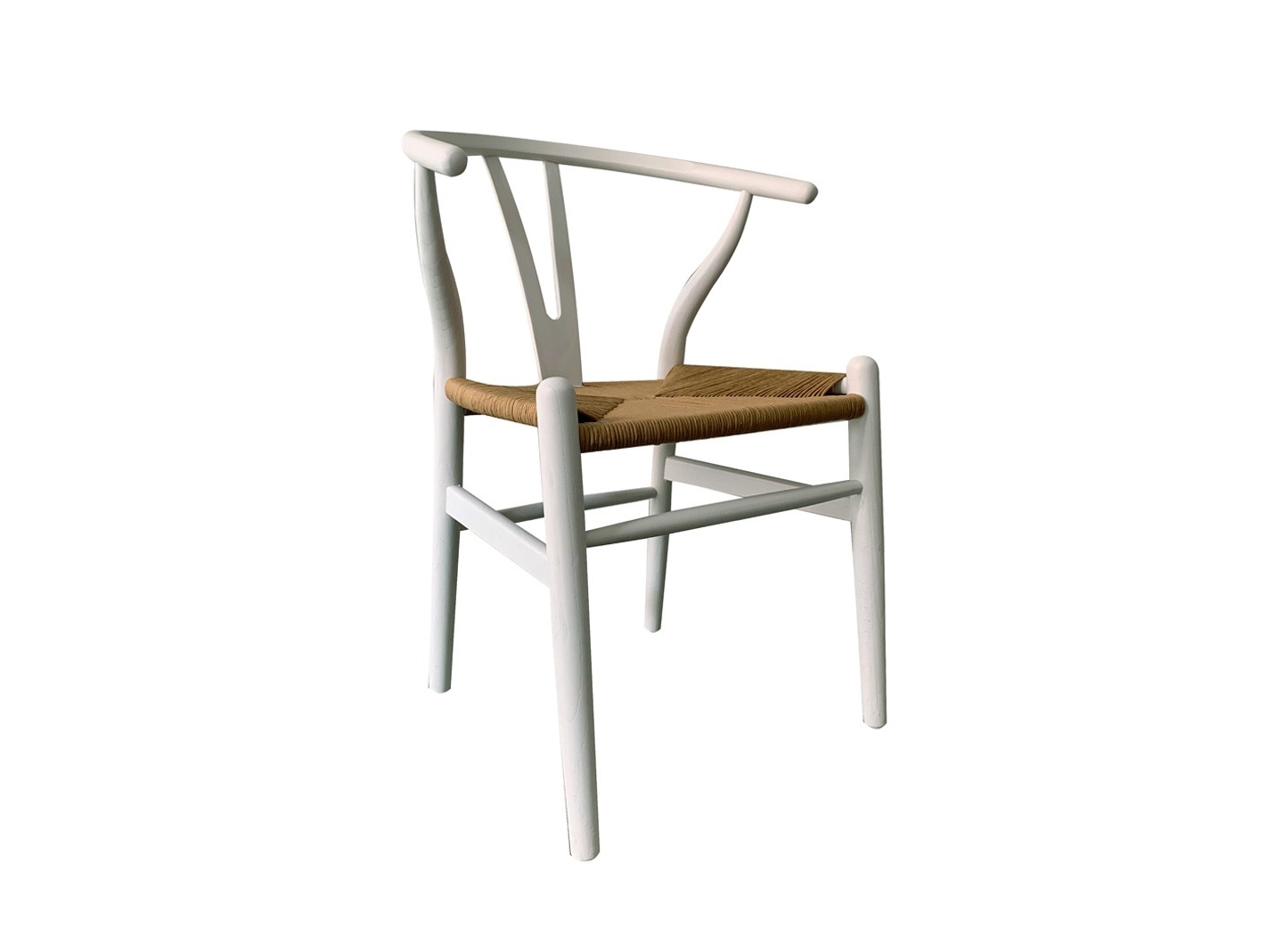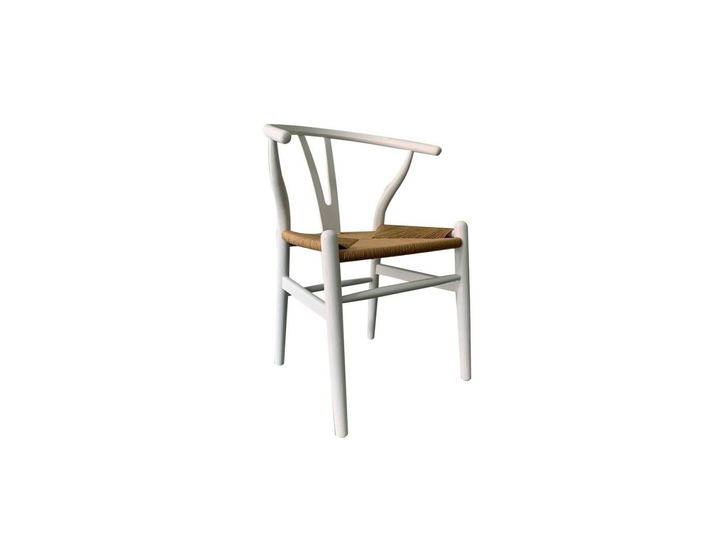 Silla de madera maciza olmo lacada blanca con asiento de rattan
