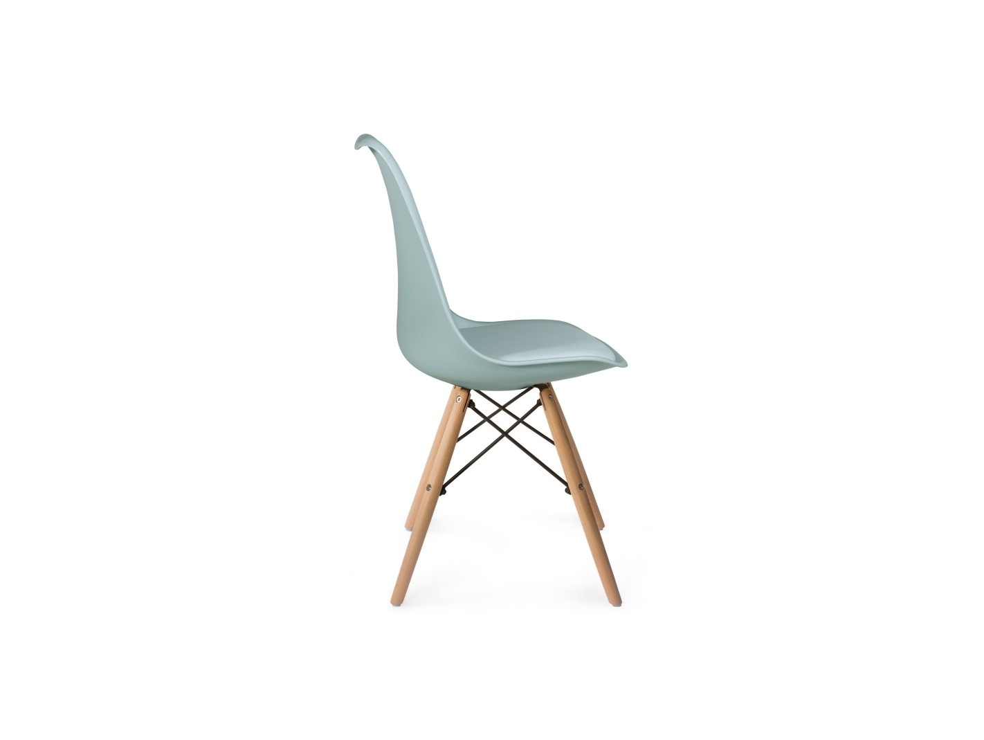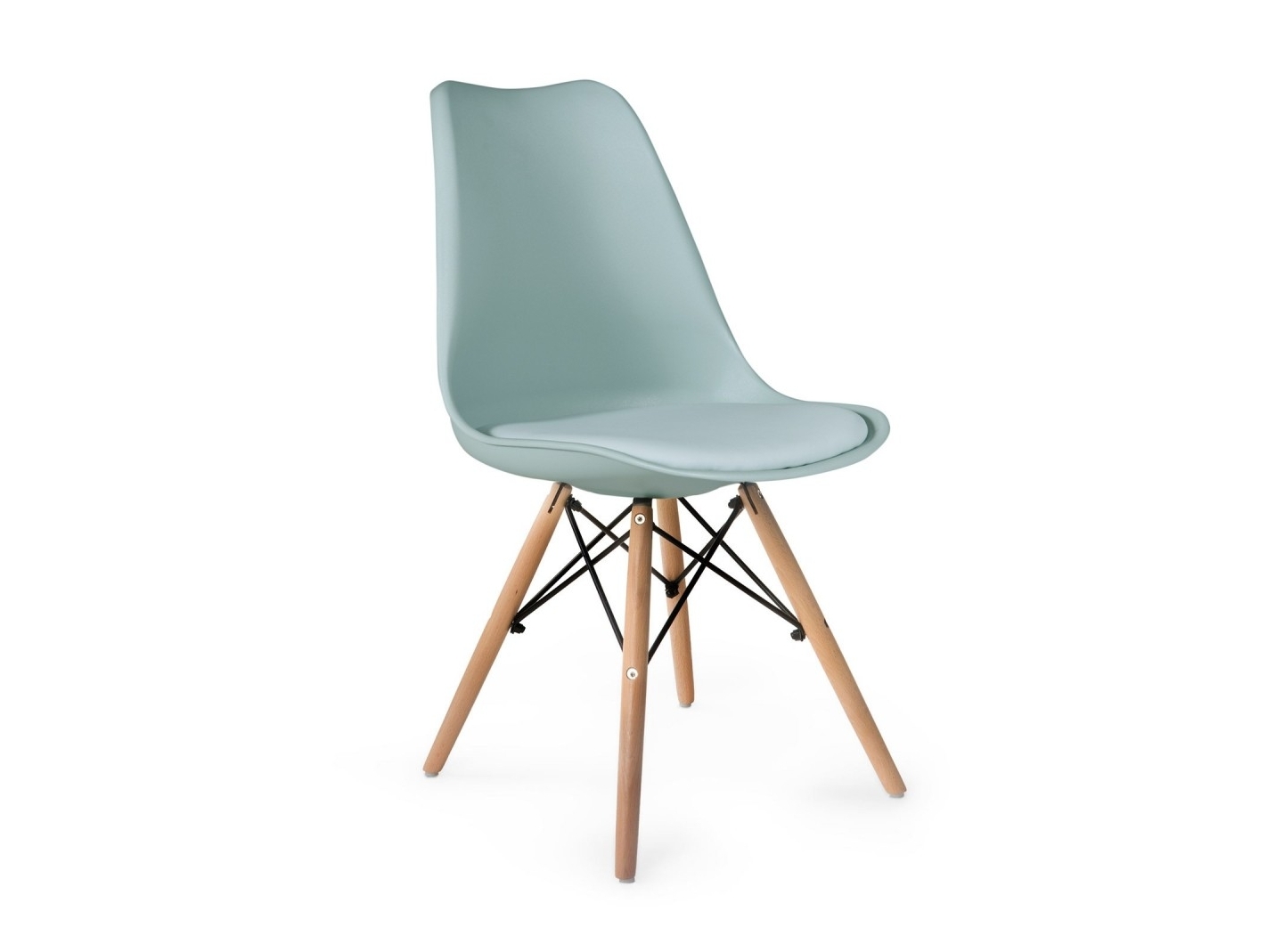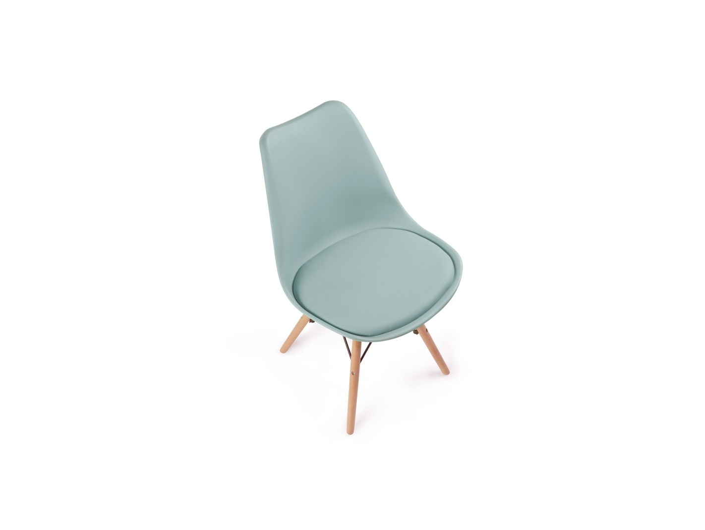 Silla color agua con cojín fijo y patas de madera