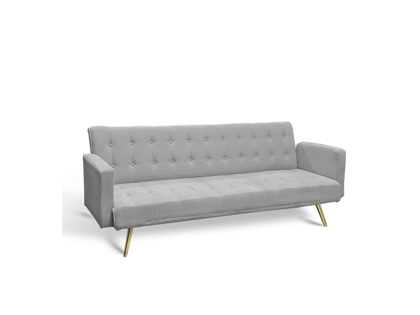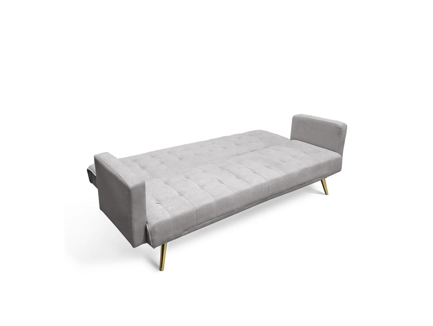Sofá cama terciopelo con patas metálicas doradas color gris claro