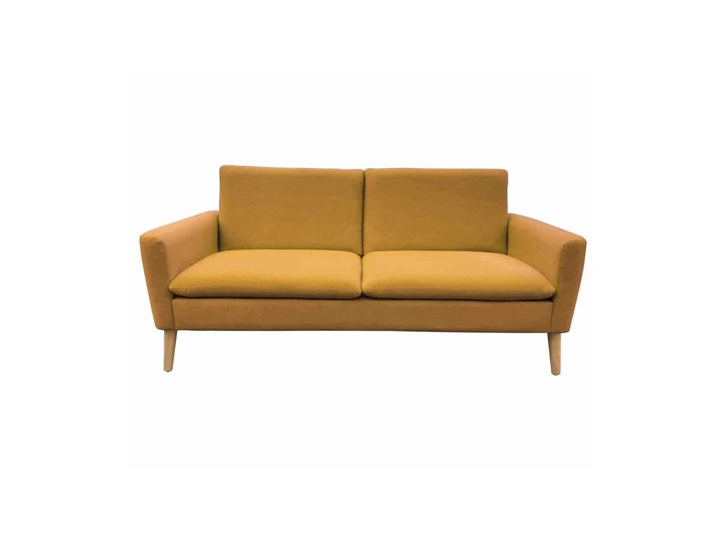 Sofá de 3 plazas. Acabado textil en color amarillo. Patas en madera color natural.